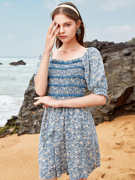 一款法式复古碎花连衣裙,穿上感觉坐在那里就给人一种温柔优雅的感觉,简单的碎花元素和泡泡袖,就能让你拥有小清新少女般的俏皮和优雅,像旧时光走出来的美人儿。